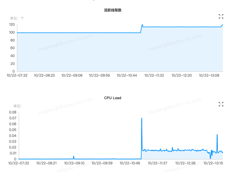 • 资源异常:自11:10分之后,对应的Checkpoint操作一直处于“进行中”状态,未能完成。同时,JobManager的活跃线程数激增,CPU负载飙升,系统性能严重下降。